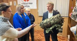 Активистки "Женского Движения Единой России" продемонстрировали депутату Владимиру Жуку работу по изготовлению маскировочных сетей для участников СВО