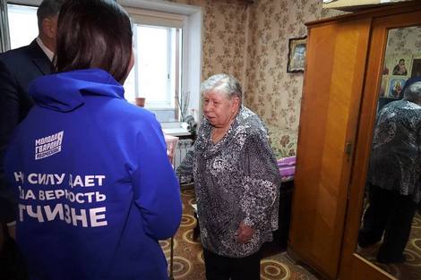 Председатель Совета ветеранов Михаил Набокин и и.о руководителя местного отделения МГЕРа Светлана Кормильцына навестили Любовь Павловну Спиридонову - жительницу блокадного Ленинграда.